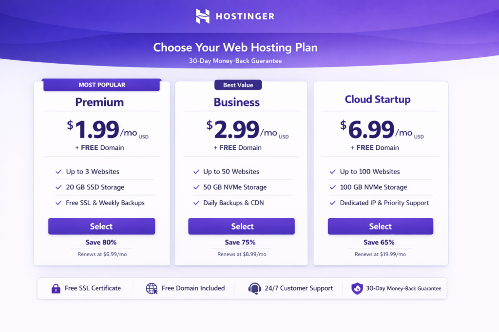 Hostinger’s pricing structure is one of the best in the hosting industry. Their plans are incredibly cost-effective, especially for someone just starting out. With plans that start as low as a few dollars per month, you don’t have to break the bank to get reliable hosting.